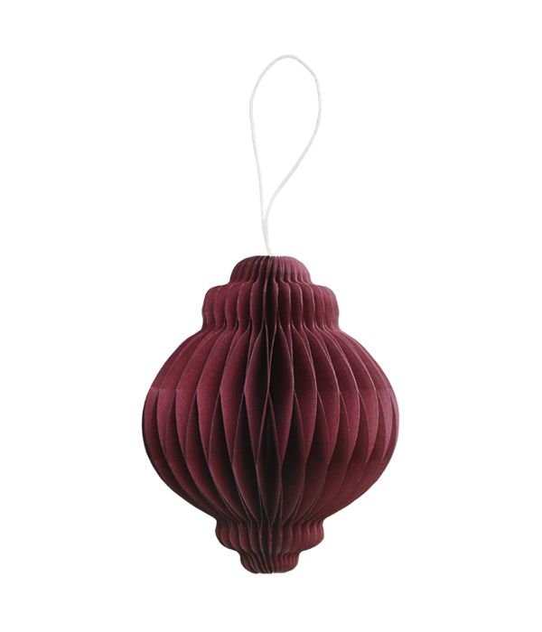 Syvän viininpunainen paperiornamentti on vahvasta paperista valmistettu koriste niin kodin sisustamiseen arkena kuin muuhun koristeluun juhlasesonkeina Kevyt koriste pukee niin kuusen, kranssin kuin oksat maljakossa taivuttamatta oksia. Kaunis lisä lahjapaketin kylkeen.