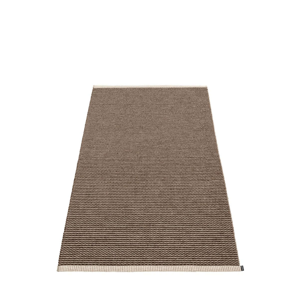 Pappelinan Mono muovimatossa on paljon eri koko- ja värivaihtoehtoja sekä kudotut päädyt, jotka tuovat kivan, viimeistellyn lisän muutenkin tyylikkääseen mattoon. Valitse oma värisi tai yhdistele värejä rohkeasti!